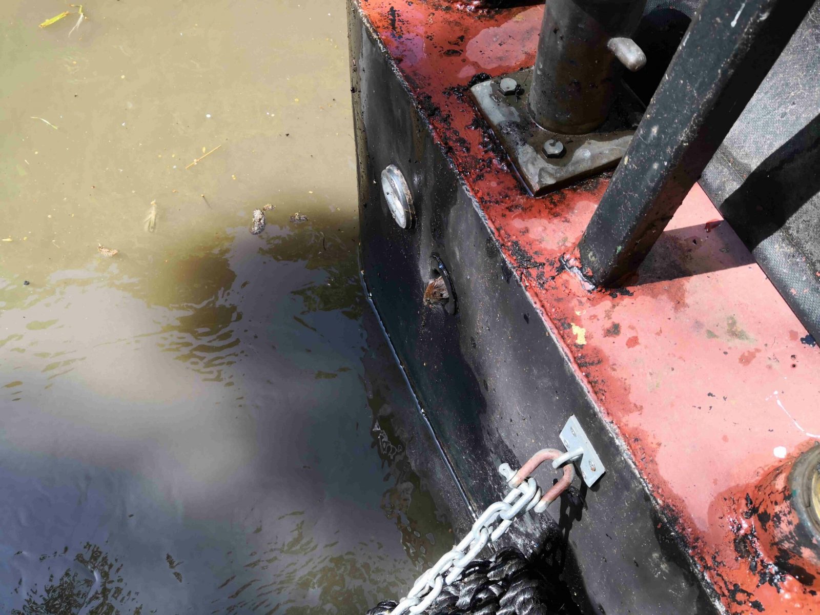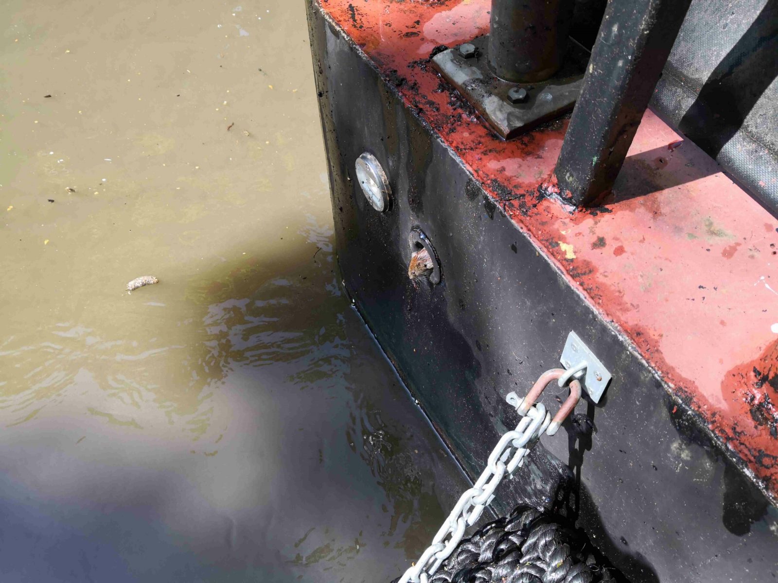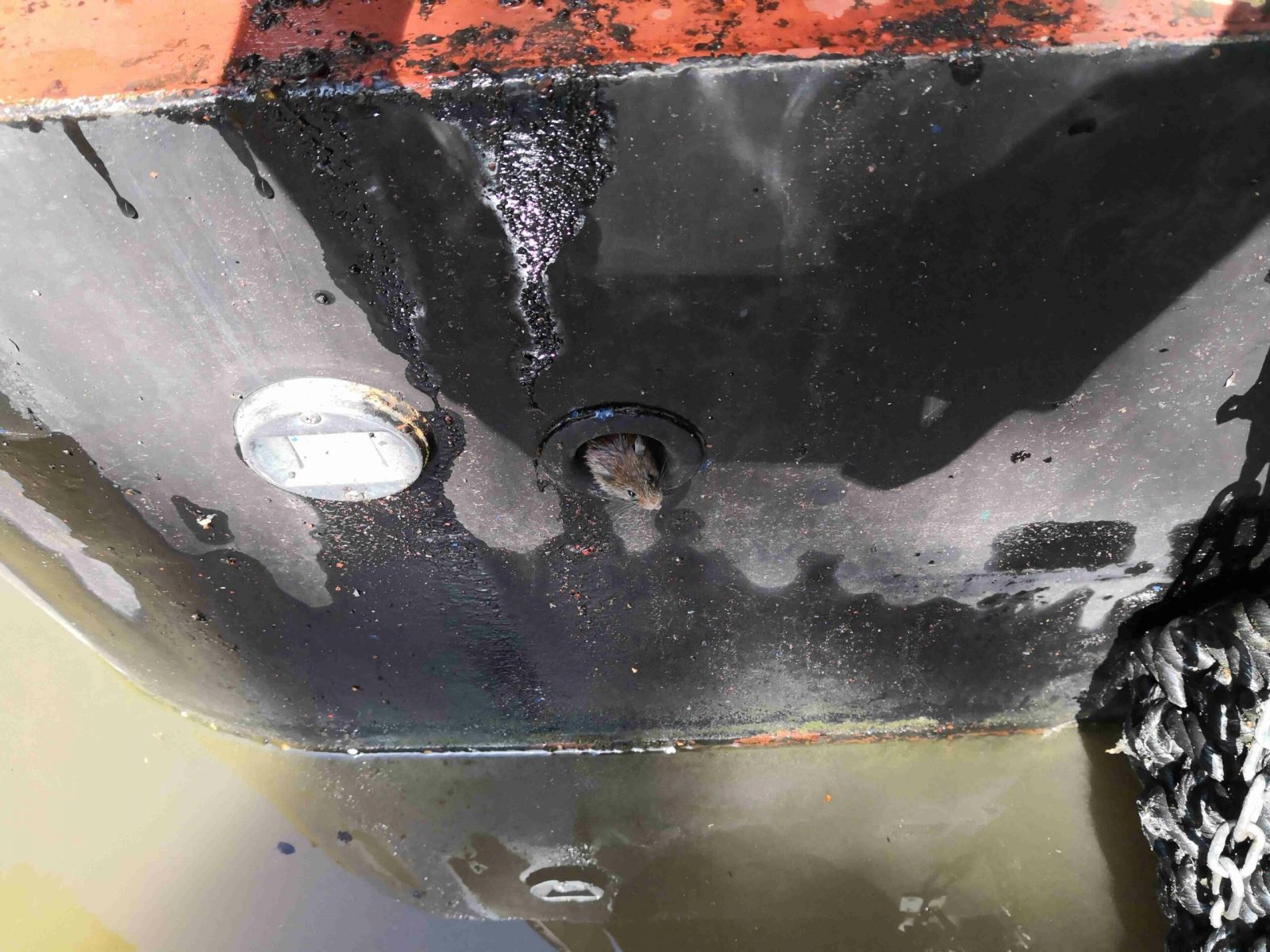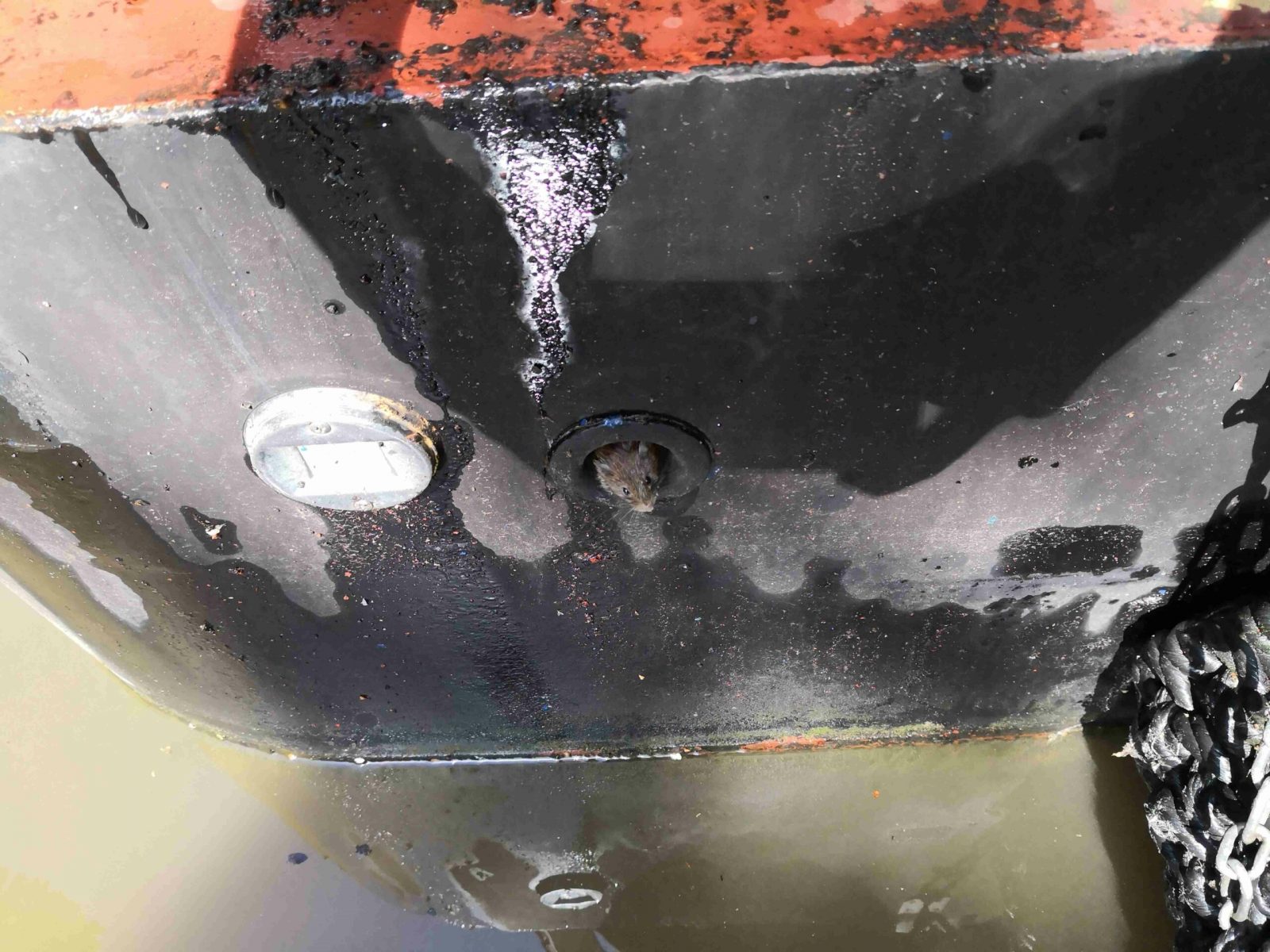 Well, while working on the boat’s engine, I was surprised by this little sod, who’d managed to crawl into the air intake skin fitting on the transom, and got very irritated at the engine being fired up! How the little dude avoided getting sucked into one of the cylinders, I have no idea! The wee mouse was recovered from the air intake & released on the towpath.